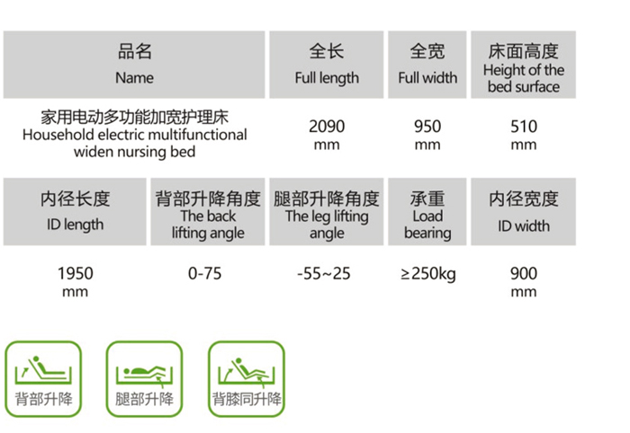 5、轻松实现背部升降0~75°、腿部升降-55~25°、左右翻身0~50°。